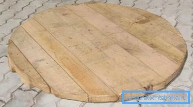 - Bouclier sorti du diamètre du churbak d'au moins 20 cm ou de planches épaisses. En même temps, les dimensions du bouclier doivent être telles que ses bords s’étendent au-delà de la doublure intérieure sur au moins 10 cm de chaque côté.