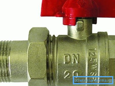 Utile: la taille et la pression de travail sont généralement présentes dans l’étiquetage des vannes. Par exemple, l'inscription DU15 RU16 signifie que nous avons un produit avec un passage conditionnel (correspondant approximativement au diamètre intérieur du tuyau à fixer) de 15 mm et une pression de travail de 16 atmosphères.