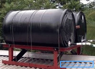 - Dans la partie inférieure du réservoir avec une buse à mortaise est inséré et régler le tuyau avec un robinet et un arrosoir.