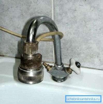 Le chauffe-eau du robinet d'eau froide est généralement utilisé dans les cuisines, plus rarement dans les lavabos. Bien sûr, il ne convient pas à une alimentation en eau à part entière, car il fournit une tête relativement petite, mais dans certaines situations, cela peut être très utile.