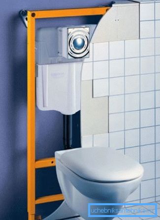 Dans ce cas, le cadre en métal est préinstallé, après quoi la disposition de l'appareil est marquée. Après cela, la buse est amenée à l'endroit où sera située la buse des toilettes.