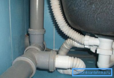 La connexion de l'évier à l'égout est également effectuée de la même manière. Le plus important est d’assurer l’étanchéité de toutes les connexions.