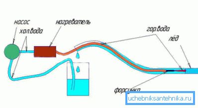 La solution la plus simple consiste à verser de l’eau bouillante dans le système, mais celle-ci ne peut être utilisée que si la distance au bloc de glace n’est pas supérieure à 2 m. Sur de grandes distances, il refroidira simplement jusqu'à atteindre la glace.